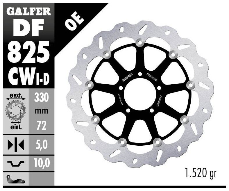 Spedizione GRATIS in ItaliaDisco freno anteriore sinistra Galfer WAVE FLOATING a margherita flottante con mozzo in alluminio per Ducati Multistrada V4 2022 (1 disco) DF825CWI