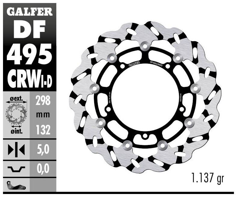 I dischi “Disc Wave®” rappresentano l’esempio migliore di Ricerca e Sviluppo di Galfer. I dischi Galfer vengono prodotti con macchine a taglio laser utilizzando la miglior qualità di acciaio inossidabile. Le tecnologie di produzione derivano direttamente dalle competizioni e rese disponibili a tutti gli utenti. Il montaggio non richiede staffe o parti supplementari e sono compatibili ai ricambi originali. Il disco freno “Disc Wave®” è una proprietà intellettuale di Industrias Galfer SA protetta da brevetto in Europa ed America.