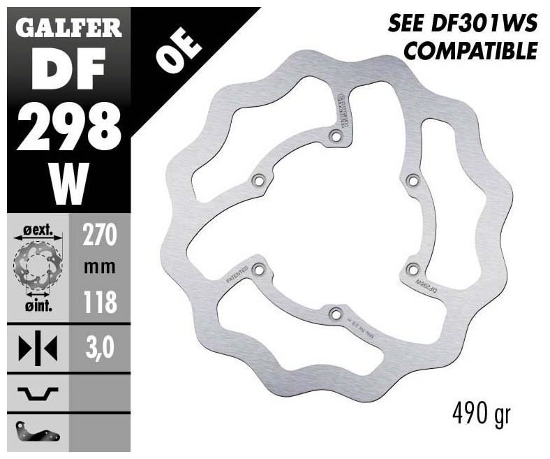 I dischi “Disc Wave®” rappresentano l’esempio migliore di Ricerca e Sviluppo di Galfer. I dischi Galfer vengono prodotti con macchine a taglio laser utilizzando la miglior qualità di acciaio inossidabile. Le tecnologie di produzione derivano direttamente dalle competizioni e rese disponibili a tutti gli utenti. Il montaggio non richiede staffe o parti supplementari e sono compatibili ai ricambi originali. Il disco freno “Disc Wave®” è una proprietà intellettuale di Industrias Galfer SA protetta da brevetto in Europa ed America.