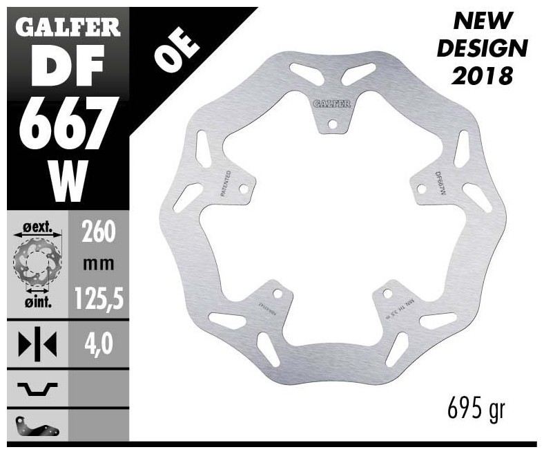 I dischi “Disc Wave®” rappresentano l’esempio migliore di Ricerca e Sviluppo di Galfer. I dischi Galfer vengono prodotti con macchine a taglio laser utilizzando la miglior qualità di acciaio inossidabile. Le tecnologie di produzione derivano direttamente dalle competizioni e rese disponibili a tutti gli utenti. Il montaggio non richiede staffe o parti supplementari e sono compatibili ai ricambi originali. Il disco freno “Disc Wave®” è una proprietà intellettuale di Industrias Galfer SA protetta da brevetto in Europa ed America.