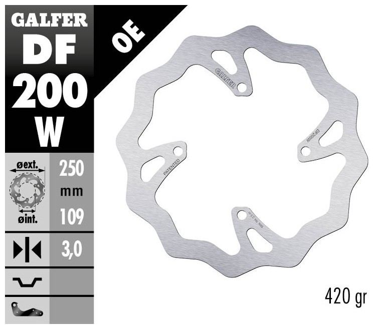 I dischi “Disc Wave®” rappresentano l’esempio migliore di Ricerca e Sviluppo di Galfer. I dischi Galfer vengono prodotti con macchine a taglio laser utilizzando la miglior qualità di acciaio inossidabile. Le tecnologie di produzione derivano direttamente dalle competizioni e rese disponibili a tutti gli utenti. Il montaggio non richiede staffe o parti supplementari e sono compatibili ai ricambi originali. Il disco freno “Disc Wave®” è una proprietà intellettuale di Industrias Galfer SA protetta da brevetto in Europa ed America.