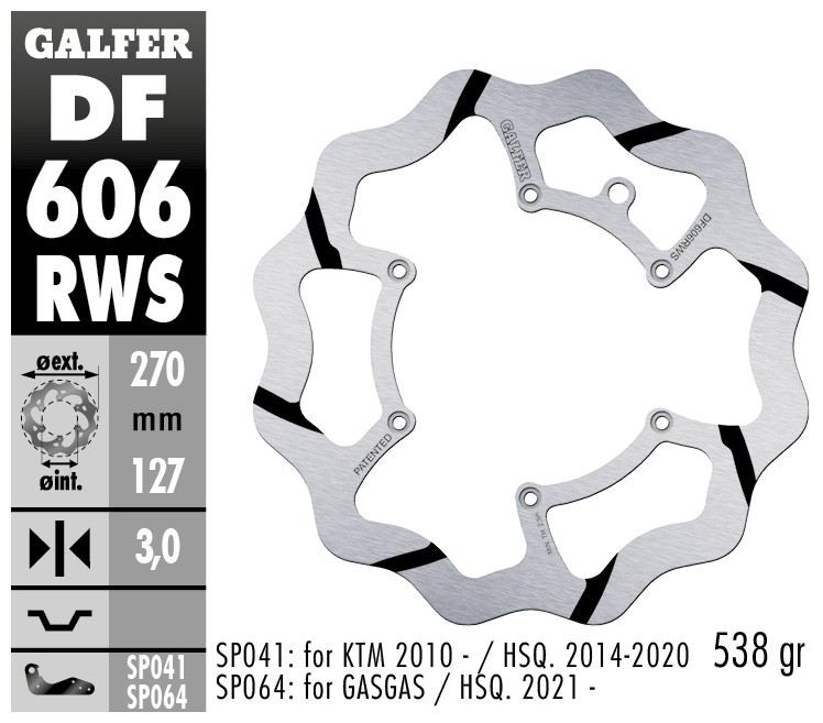 I dischi “Disc Wave®” rappresentano l’esempio migliore di Ricerca e Sviluppo di Galfer. I dischi Galfer vengono prodotti con macchine a taglio laser utilizzando la miglior qualità di acciaio inossidabile. Le tecnologie di produzione derivano direttamente dalle competizioni e rese disponibili a tutti gli utenti. Il montaggio non richiede staffe o parti supplementari e sono compatibili ai ricambi originali. Il disco freno “Disc Wave®” è una proprietà intellettuale di Industrias Galfer SA protetta da brevetto in Europa ed America.