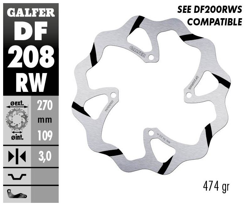 I dischi “Disc Wave®” rappresentano l’esempio migliore di Ricerca e Sviluppo di Galfer. I dischi Galfer vengono prodotti con macchine a taglio laser utilizzando la miglior qualità di acciaio inossidabile. Le tecnologie di produzione derivano direttamente dalle competizioni e rese disponibili a tutti gli utenti. Il montaggio non richiede staffe o parti supplementari e sono compatibili ai ricambi originali. Il disco freno “Disc Wave®” è una proprietà intellettuale di Industrias Galfer SA protetta da brevetto in Europa ed America.