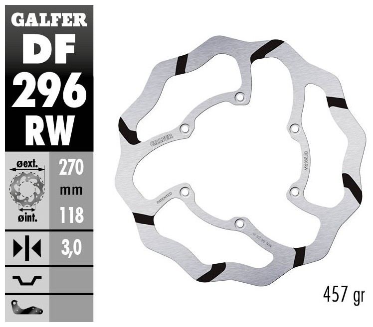 I dischi “Disc Wave®” rappresentano l’esempio migliore di Ricerca e Sviluppo di Galfer. I dischi Galfer vengono prodotti con macchine a taglio laser utilizzando la miglior qualità di acciaio inossidabile. Le tecnologie di produzione derivano direttamente dalle competizioni e rese disponibili a tutti gli utenti. Il montaggio non richiede staffe o parti supplementari e sono compatibili ai ricambi originali. Il disco freno “Disc Wave®” è una proprietà intellettuale di Industrias Galfer SA protetta da brevetto in Europa ed America.