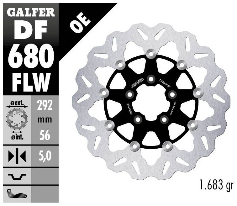 Disco freno anteriore Galfer WAVE FLOATING a margherita flottante con mozzo in alluminio per harley davidson flhtcu ultra classic 1687 2012 (1 disco) DF680CW