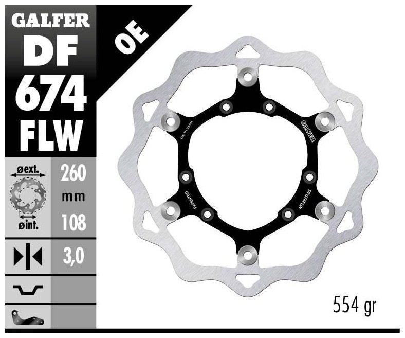 I dischi “Disc Wave®” rappresentano l’esempio migliore di Ricerca e Sviluppo di Galfer. I dischi Galfer vengono prodotti con macchine a taglio laser utilizzando la miglior qualità di acciaio inossidabile. Le tecnologie di produzione derivano direttamente dalle competizioni e rese disponibili a tutti gli utenti. Il montaggio non richiede staffe o parti supplementari e sono compatibili ai ricambi originali. Il disco freno “Disc Wave®” è una proprietà intellettuale di Industrias Galfer SA protetta da brevetto in Europa ed America.