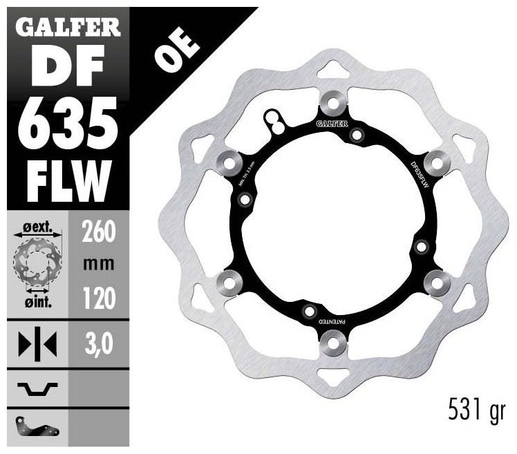 I dischi “Disc Wave®” rappresentano l’esempio migliore di Ricerca e Sviluppo di Galfer. I dischi Galfer vengono prodotti con macchine a taglio laser utilizzando la miglior qualità di acciaio inossidabile. Le tecnologie di produzione derivano direttamente dalle competizioni e rese disponibili a tutti gli utenti. Il montaggio non richiede staffe o parti supplementari e sono compatibili ai ricambi originali. Il disco freno “Disc Wave®” è una proprietà intellettuale di Industrias Galfer SA protetta da brevetto in Europa ed America.
