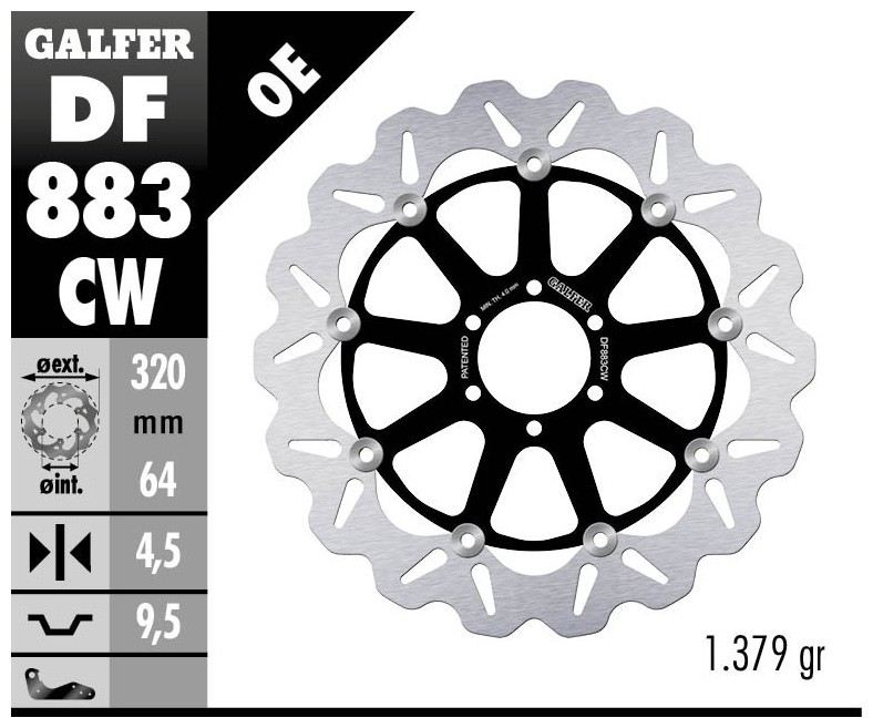I dischi “Disc Wave®” rappresentano l’esempio migliore di Ricerca e Sviluppo di Galfer. I dischi Galfer vengono prodotti con macchine a taglio laser utilizzando la miglior qualità di acciaio inossidabile. Le tecnologie di produzione derivano direttamente dalle competizioni e rese disponibili a tutti gli utenti. Il montaggio non richiede staffe o parti supplementari e sono compatibili ai ricambi originali. Il disco freno “Disc Wave®” è una proprietà intellettuale di Industrias Galfer SA protetta da brevetto in Europa ed America.