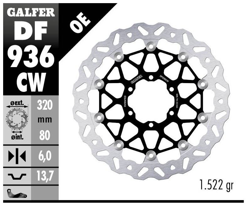 I dischi “Disc Wave®” rappresentano l’esempio migliore di Ricerca e Sviluppo di Galfer. I dischi Galfer vengono prodotti con macchine a taglio laser utilizzando la miglior qualità di acciaio inossidabile. Le tecnologie di produzione derivano direttamente dalle competizioni e rese disponibili a tutti gli utenti. Il montaggio non richiede staffe o parti supplementari e sono compatibili ai ricambi originali. Il disco freno “Disc Wave®” è una proprietà intellettuale di Industrias Galfer SA protetta da brevetto in Europa ed America.