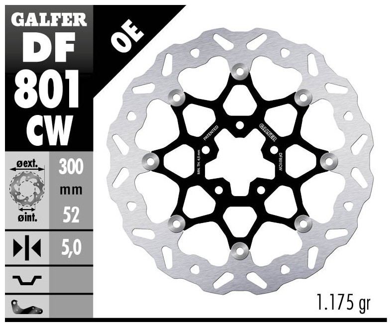 I dischi “Disc Wave®” rappresentano l’esempio migliore di Ricerca e Sviluppo di Galfer. I dischi Galfer vengono prodotti con macchine a taglio laser utilizzando la miglior qualità di acciaio inossidabile. Le tecnologie di produzione derivano direttamente dalle competizioni e rese disponibili a tutti gli utenti. Il montaggio non richiede staffe o parti supplementari e sono compatibili ai ricambi originali. Il disco freno “Disc Wave®” è una proprietà intellettuale di Industrias Galfer SA protetta da brevetto in Europa ed America.