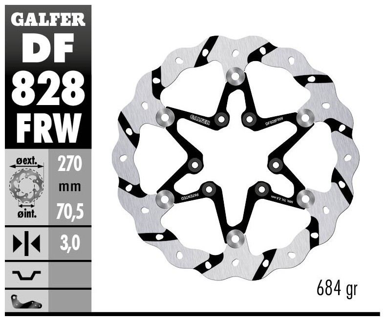 I dischi “Disc Wave®” rappresentano l’esempio migliore di Ricerca e Sviluppo di Galfer. I dischi Galfer vengono prodotti con macchine a taglio laser utilizzando la miglior qualità di acciaio inossidabile. Le tecnologie di produzione derivano direttamente dalle competizioni e rese disponibili a tutti gli utenti. Il montaggio non richiede staffe o parti supplementari e sono compatibili ai ricambi originali. Il disco freno “Disc Wave®” è una proprietà intellettuale di Industrias Galfer SA protetta da brevetto in Europa ed America.