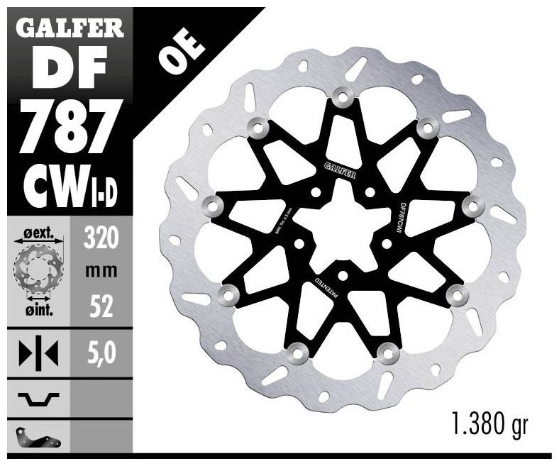 I dischi “Disc Wave®” rappresentano l’esempio migliore di Ricerca e Sviluppo di Galfer. I dischi Galfer vengono prodotti con macchine a taglio laser utilizzando la miglior qualità di acciaio inossidabile. Le tecnologie di produzione derivano direttamente dalle competizioni e rese disponibili a tutti gli utenti. Il montaggio non richiede staffe o parti supplementari e sono compatibili ai ricambi originali. Il disco freno “Disc Wave®” è una proprietà intellettuale di Industrias Galfer SA protetta da brevetto in Europa ed America.