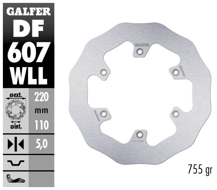 I dischi “Disc Wave®” rappresentano l’esempio migliore di Ricerca e Sviluppo di Galfer. I dischi Galfer vengono prodotti con macchine a taglio laser utilizzando la miglior qualità di acciaio inossidabile. Le tecnologie di produzione derivano direttamente dalle competizioni e rese disponibili a tutti gli utenti. Il montaggio non richiede staffe o parti supplementari e sono compatibili ai ricambi originali. Il disco freno “Disc Wave®” è una proprietà intellettuale di Industrias Galfer SA protetta da brevetto in Europa ed America.