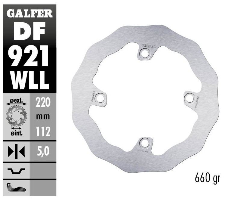 I dischi “Disc Wave®” rappresentano l’esempio migliore di Ricerca e Sviluppo di Galfer. I dischi Galfer vengono prodotti con macchine a taglio laser utilizzando la miglior qualità di acciaio inossidabile. Le tecnologie di produzione derivano direttamente dalle competizioni e rese disponibili a tutti gli utenti. Il montaggio non richiede staffe o parti supplementari e sono compatibili ai ricambi originali. Il disco freno “Disc Wave®” è una proprietà intellettuale di Industrias Galfer SA protetta da brevetto in Europa ed America.