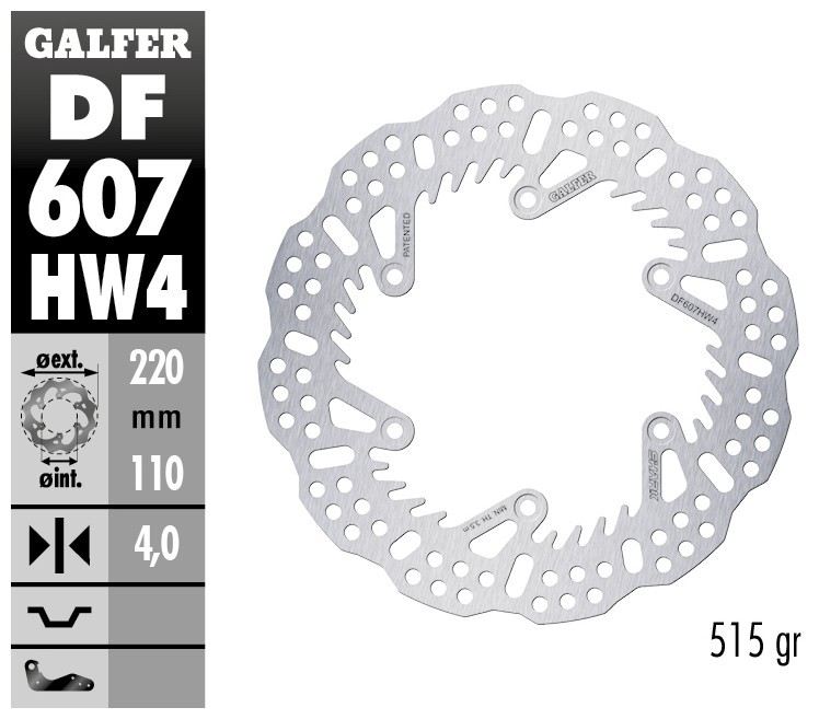 I dischi “Disc Wave®” rappresentano l’esempio migliore di Ricerca e Sviluppo di Galfer. I dischi Galfer vengono prodotti con macchine a taglio laser utilizzando la miglior qualità di acciaio inossidabile. Le tecnologie di produzione derivano direttamente dalle competizioni e rese disponibili a tutti gli utenti. Il montaggio non richiede staffe o parti supplementari e sono compatibili ai ricambi originali. Il disco freno “Disc Wave®” è una proprietà intellettuale di Industrias Galfer SA protetta da brevetto in Europa ed America.