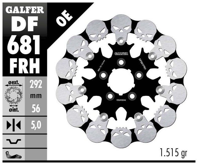 I dischi Galfer SKULL sono di design originale e presentano motivi personalizzati a forma di teschi. Sono progettati per coloro che desiderano portare l’estetica della propria moto personalizzata al livello più estremo.