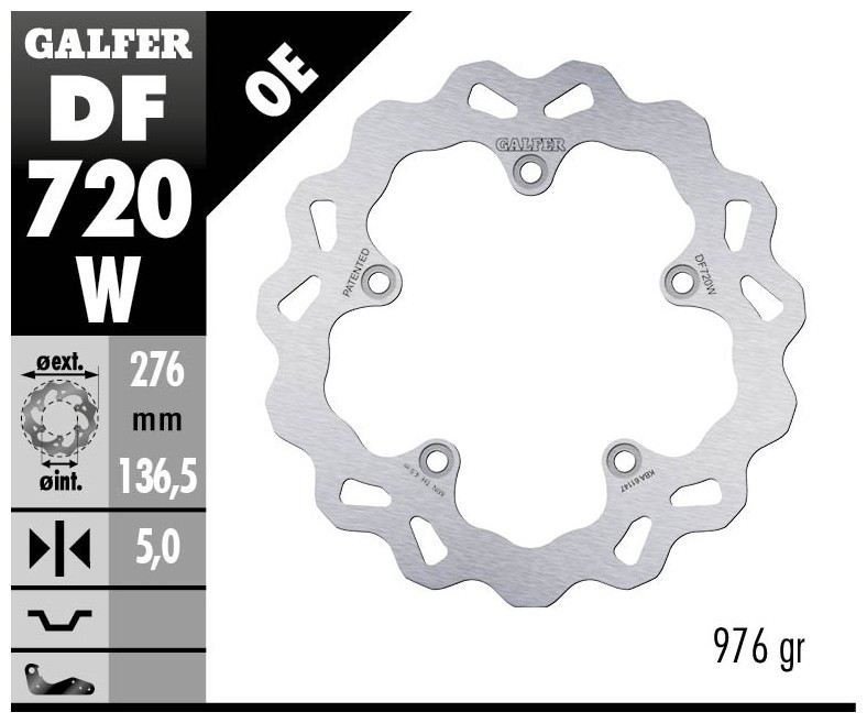 I dischi “Disc Wave®” rappresentano l’esempio migliore di Ricerca e Sviluppo di Galfer. I dischi Galfer vengono prodotti con macchine a taglio laser utilizzando la miglior qualità di acciaio inossidabile. Le tecnologie di produzione derivano direttamente dalle competizioni e rese disponibili a tutti gli utenti. Il montaggio non richiede staffe o parti supplementari e sono compatibili ai ricambi originali. Il disco freno “Disc Wave®” è una proprietà intellettuale di Industrias Galfer SA protetta da brevetto in Europa ed America.