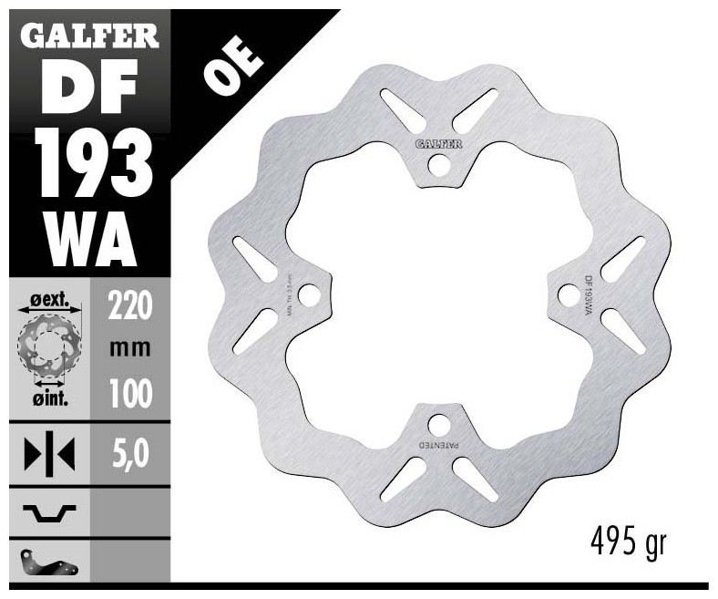 I dischi “Disc Wave®” rappresentano l’esempio migliore di Ricerca e Sviluppo di Galfer. I dischi Galfer vengono prodotti con macchine a taglio laser utilizzando la miglior qualità di acciaio inossidabile. Le tecnologie di produzione derivano direttamente dalle competizioni e rese disponibili a tutti gli utenti. Il montaggio non richiede staffe o parti supplementari e sono compatibili ai ricambi originali. Il disco freno “Disc Wave®” è una proprietà intellettuale di Industrias Galfer SA protetta da brevetto in Europa ed America.