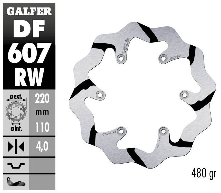 I dischi “Disc Wave®” rappresentano l’esempio migliore di Ricerca e Sviluppo di Galfer. I dischi Galfer vengono prodotti con macchine a taglio laser utilizzando la miglior qualità di acciaio inossidabile. Le tecnologie di produzione derivano direttamente dalle competizioni e rese disponibili a tutti gli utenti. Il montaggio non richiede staffe o parti supplementari e sono compatibili ai ricambi originali. Il disco freno “Disc Wave®” è una proprietà intellettuale di Industrias Galfer SA protetta da brevetto in Europa ed America.