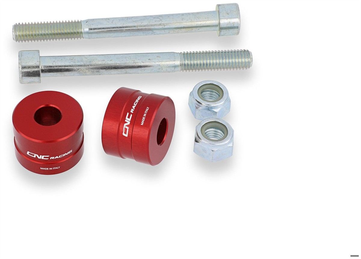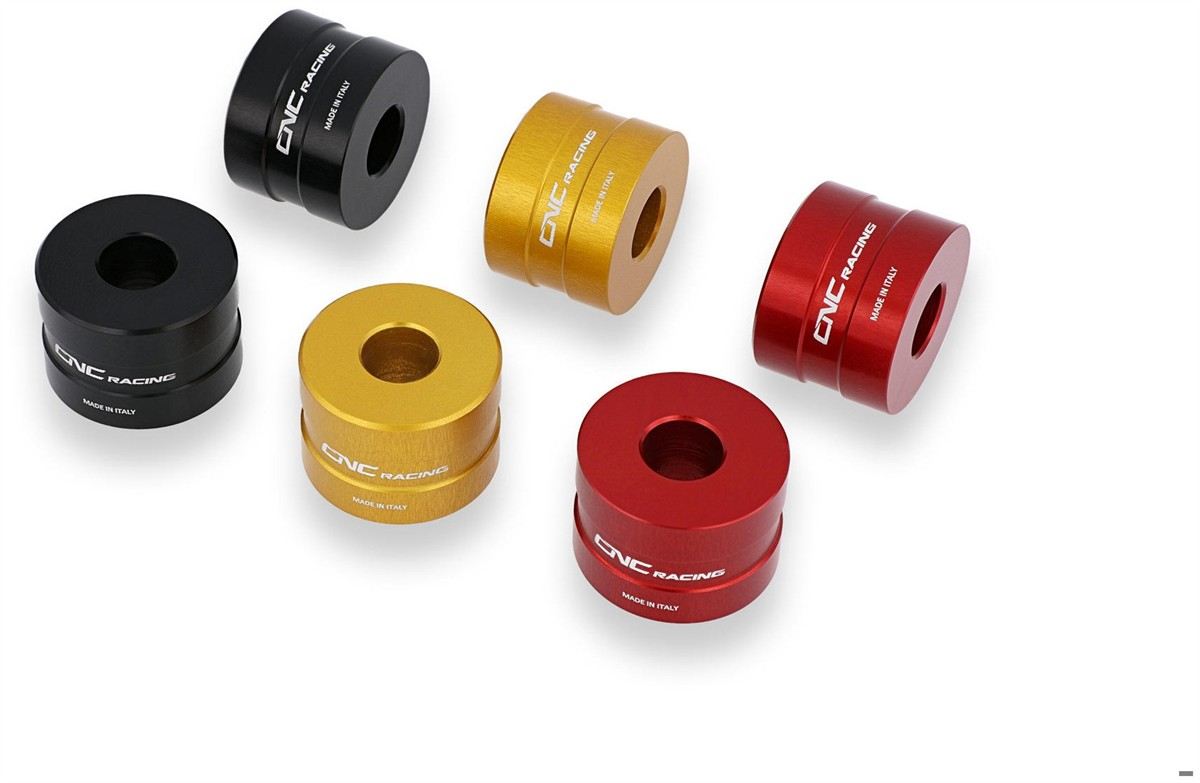 Kit distanziali alzamanubrio altezza 20 mm realizzati dal pieno in lega leggera con successiva anodizzazione superficiale.
