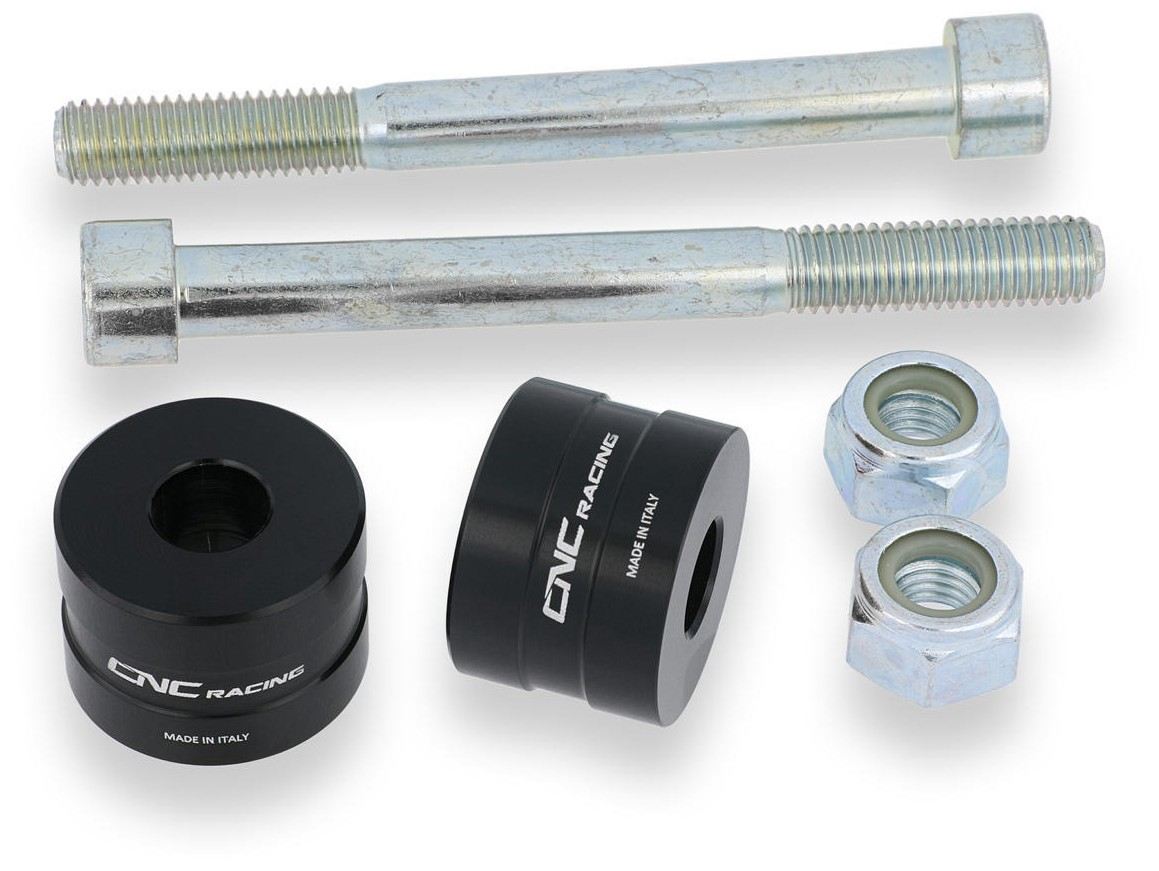 Il kit è composto da 2 distanziali, completi di viteria in acciao inox M10x100 e dadi autobloccanti.