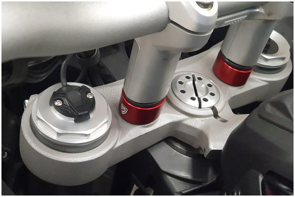 Il kit è composto da due distanziali aventi lo stesso diametro e forma della colonna riser originale e due viti speciali in acciaio inox.