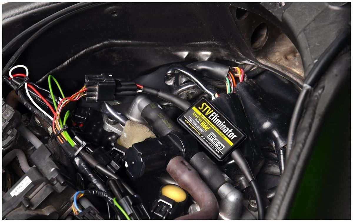 Basta scollegare il motore dell'attuatore dal cablaggio principale. Collegare l'Eliminatore STV e l'unità funzionerà quando il motore dell'attuatore sarà ancora in posizione. Non è richiesta alcuna giunzione o saldatura e il cablaggio della moto rimane intatto.