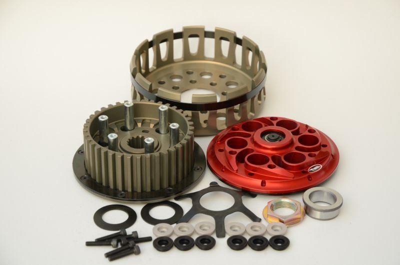 La frizione antisaltellamento di serie si comporta bene nell'uso stradale, ma nell'uso pista-agonistico è necessario un gruppo specifico, per compensare con una reattività maggiore gli effetti delle staccate estreme, scalate veloci di marcia, maggiore velocità di percorrenza della curva, ed eventuali modifiche motore, come la maggiore compressione. Sono quindi necessari una più efficace azione antisaltellamento, risposta più rapida e re-innesto meno brusco. La frizione TSS ha rampe meno inclinate ed un funzionamento uniforme. Grazie alla possibilità di scegliere il numero di molle secondarie o il disegno dei bicchierini di ritenzione molla il pilota può regolare in dettaglio il funzionamento del gruppo per meglio assecondare il proprio stile di guida e le condizioni della pista. Inoltre il vantaggio di peso è notevole, con risparmio di energia rotativa e effetto giroscopico, con l'effetto di una migliore risposta del motore. Il gruppo è realizzato in Ergal 7075.