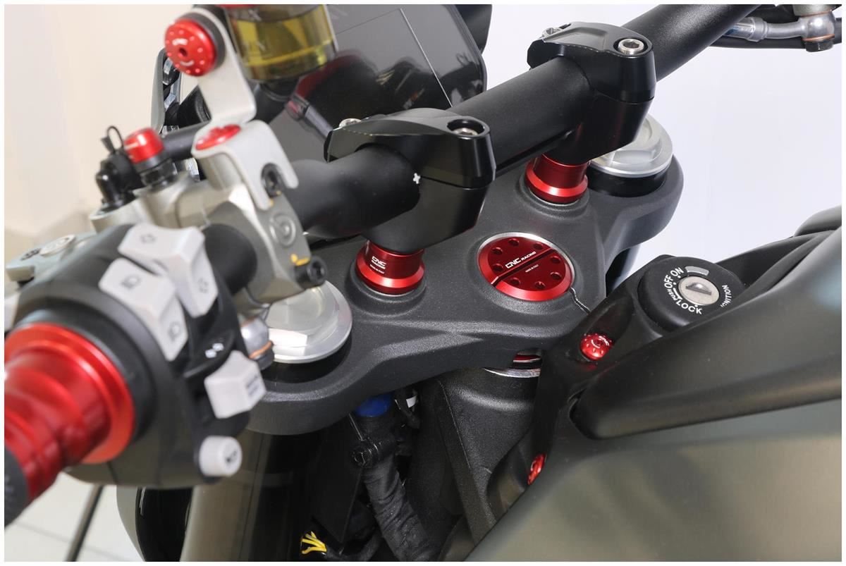 Ghiera di sterzo lavorata dal pieno in lega leggera con successiva anodizzazione superficiale.