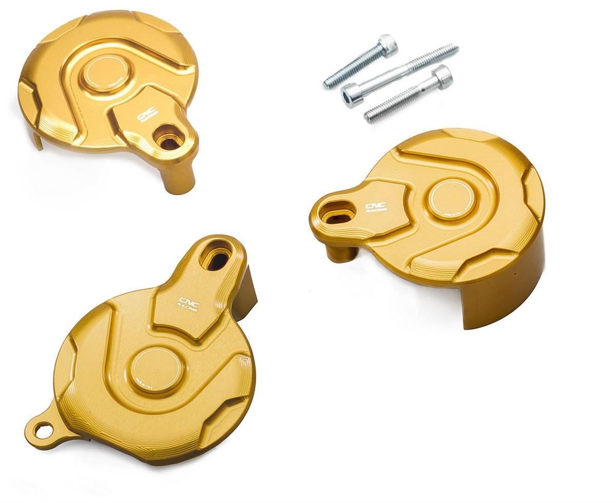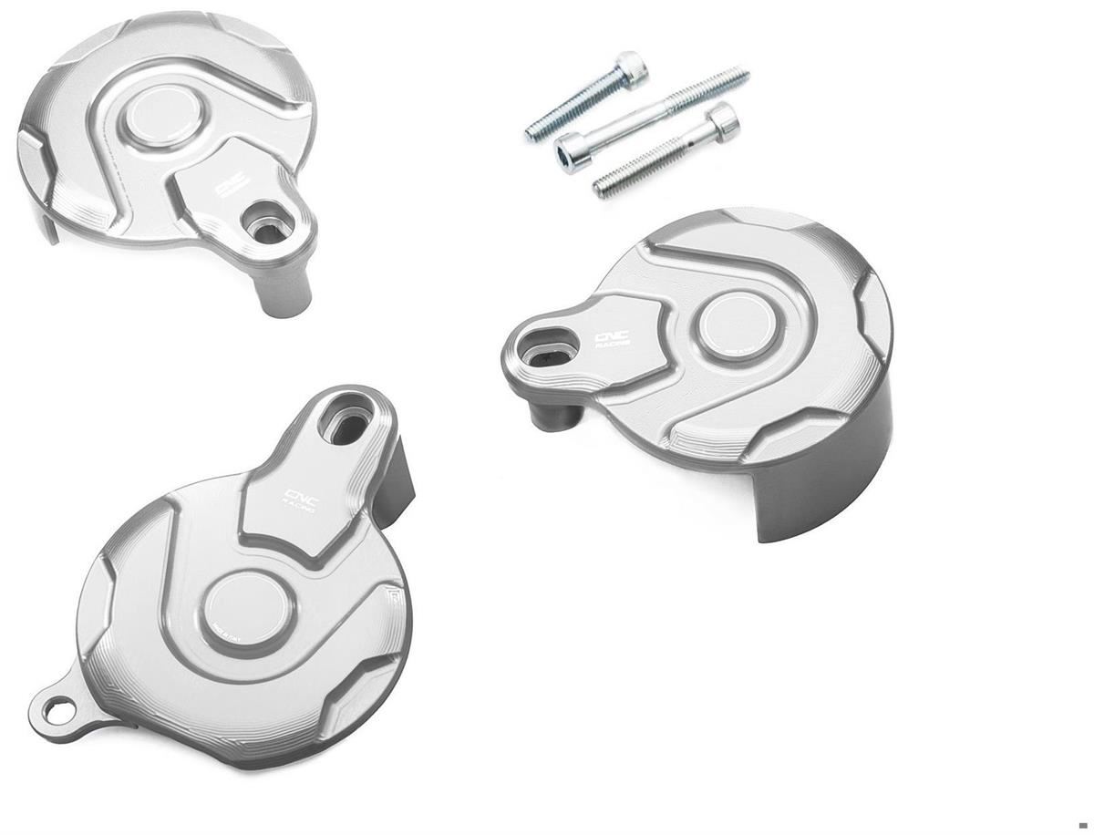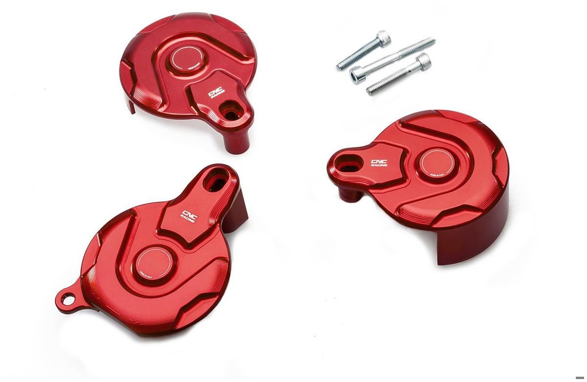 Realizzati dal pieno in lega leggera tramite macchine CNC e successiva anodizzazione superficiale, il kit è composto da tre cover che donano un estetica accattivante e racing, eliminando le coperture originali in plastica.