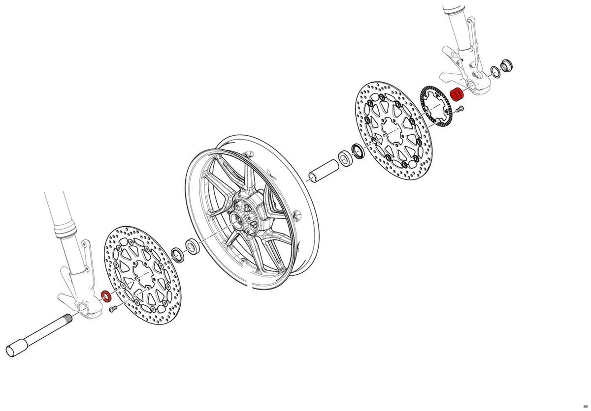 Kit distanziali per mozzo ruota anteriore Ducati lavorato dal pieno in lega leggera con successiva anodizzazione superficiale.