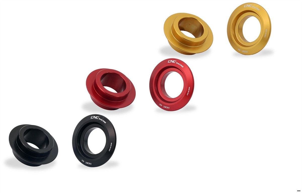 Kit distanziali per mozzo ruota anteriore Ducati lavorato dal pieno in lega leggera con successiva anodizzazione superficiale.