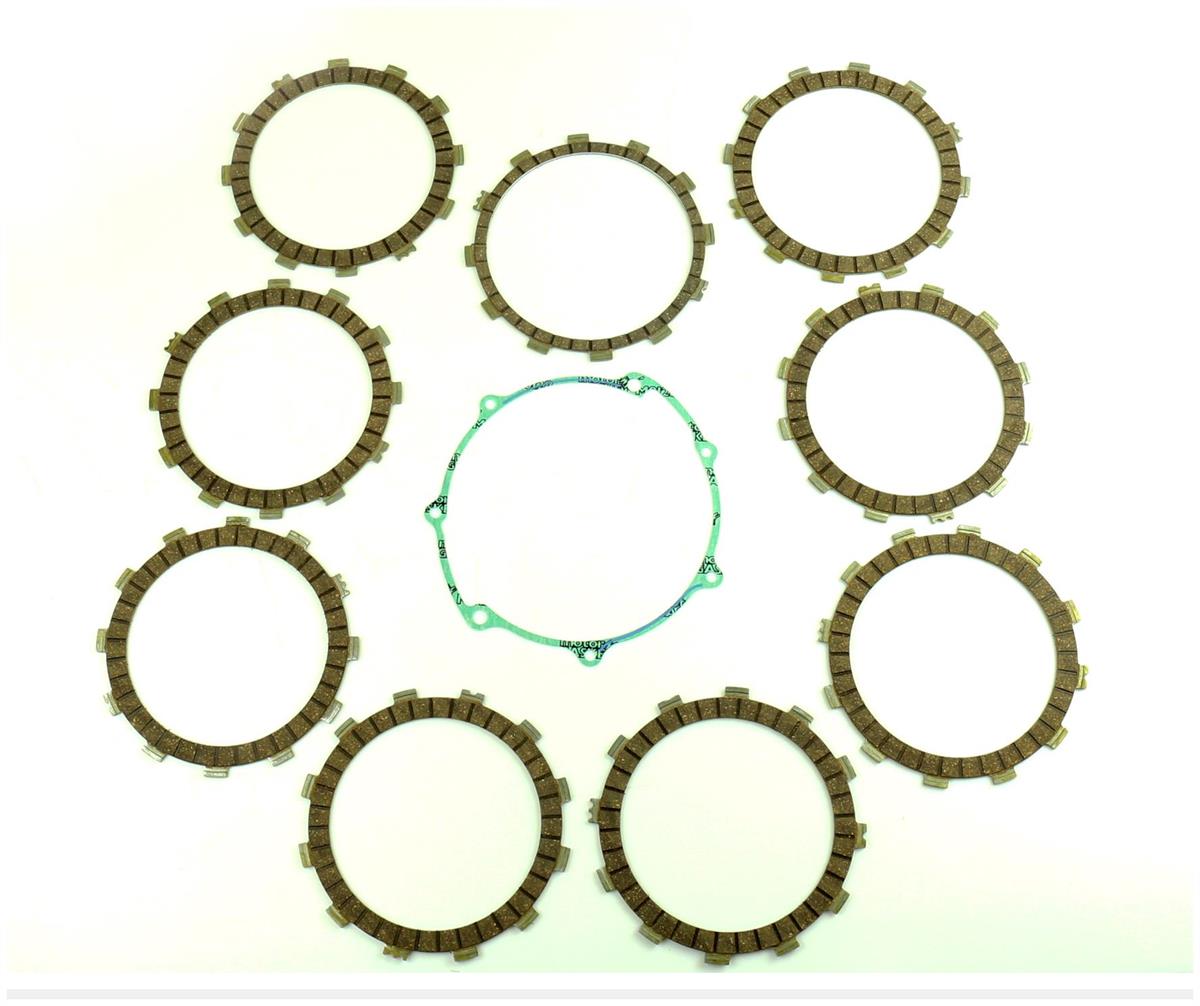 Kit frizione Athena composto da dischi guarniti equivalenti a quelli originali+guarnizione coperchio frizione dedicata.