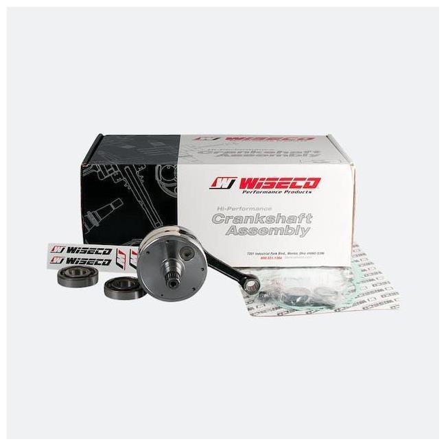 La confezione contiene un albero motore completo di biella e gabbia rulli (quest'ultima solo per i 2 tempi), i cuscinetti dell'albero motore e la serie completa di guarnizioni e paraoli.