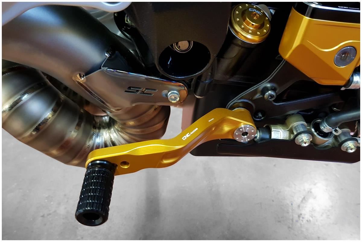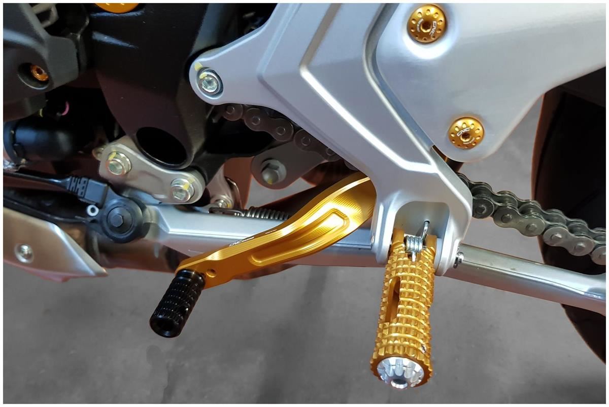 Regolabili su tre posizioni permettono un set up ottimale per ogni stile di guida. La regolazione avviene tramite fissaggio del puntalino sui tre fori.