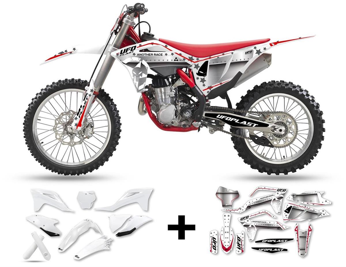 Kit Plastiche + Grafiche UFO per GasGas MCF 450 21-23 Adesivi stardust bianco