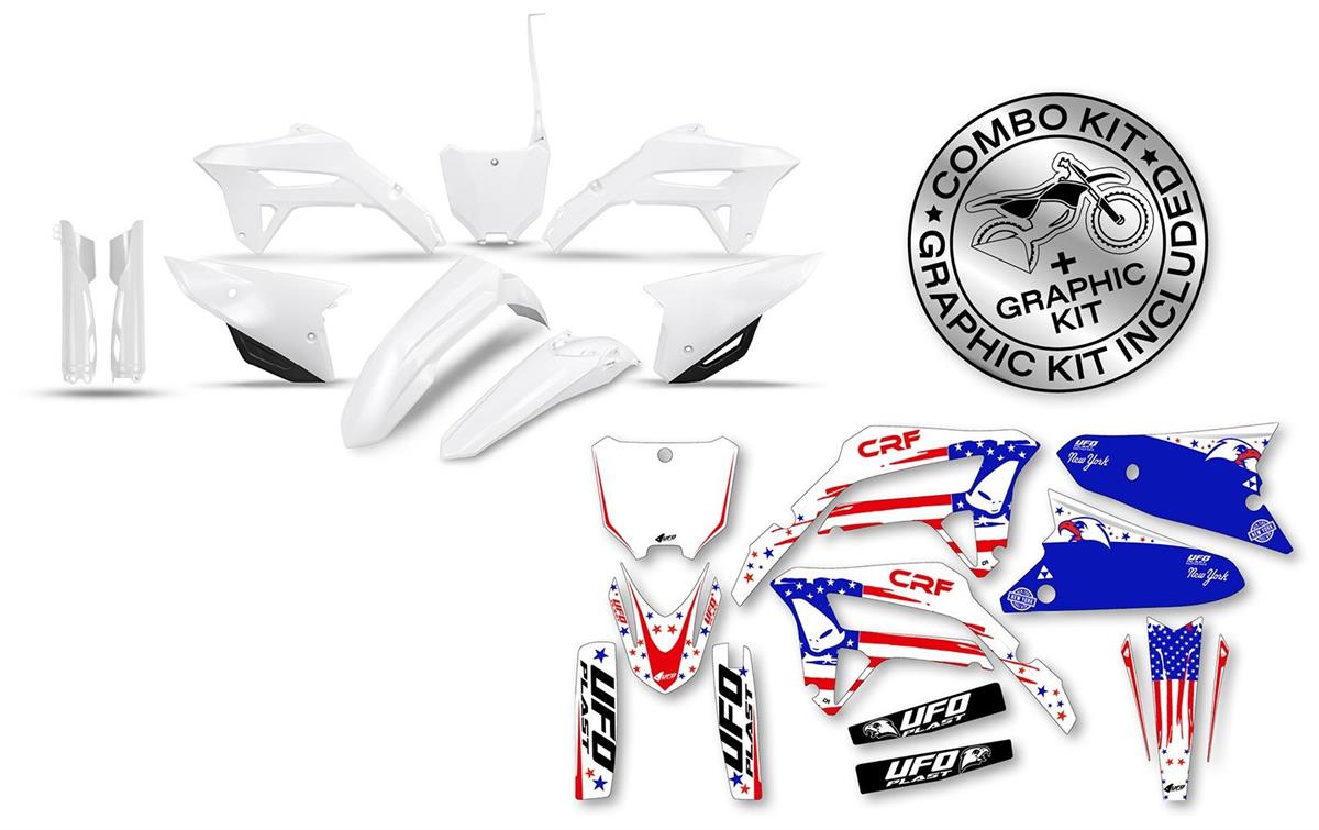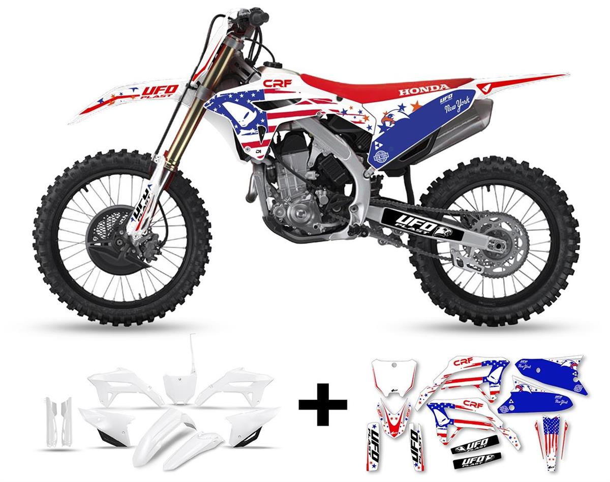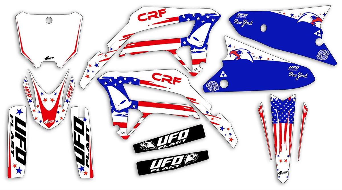 Kit Plastiche + Grafiche UFO per Honda CRF 250 R 22-23 Adesivi patriot bianco