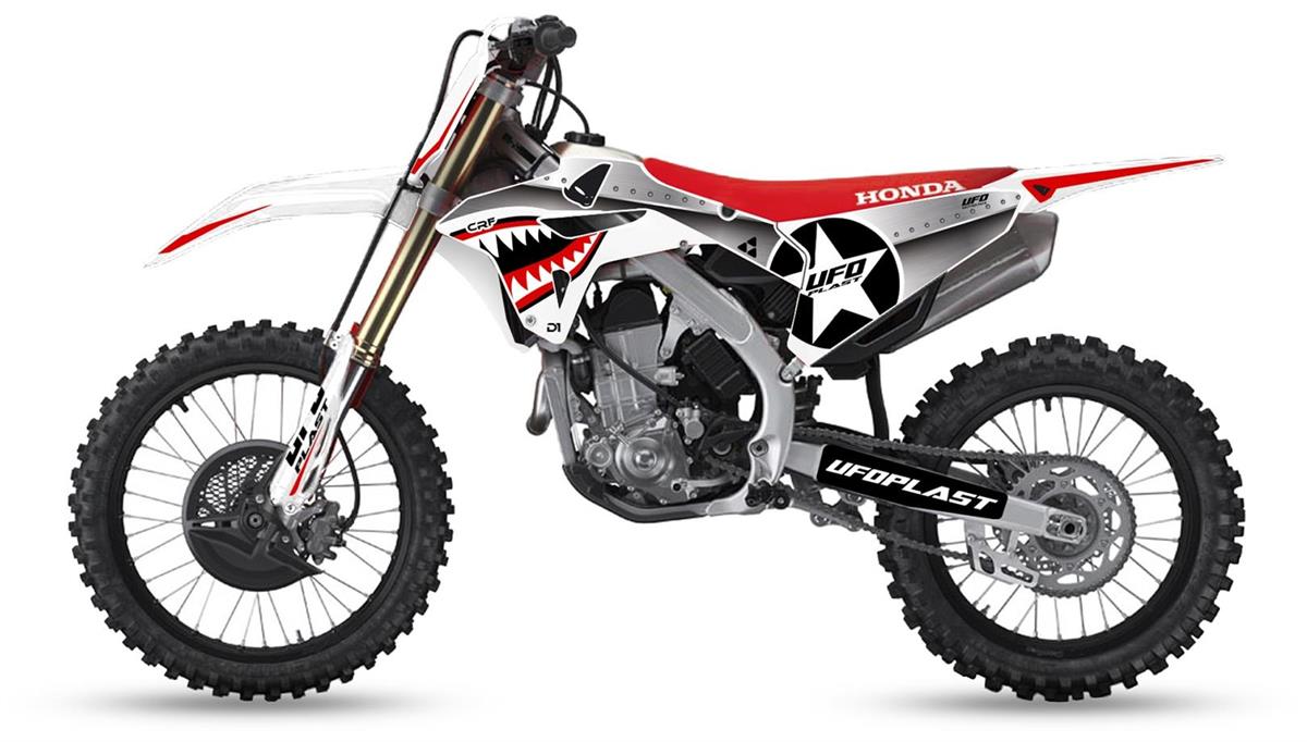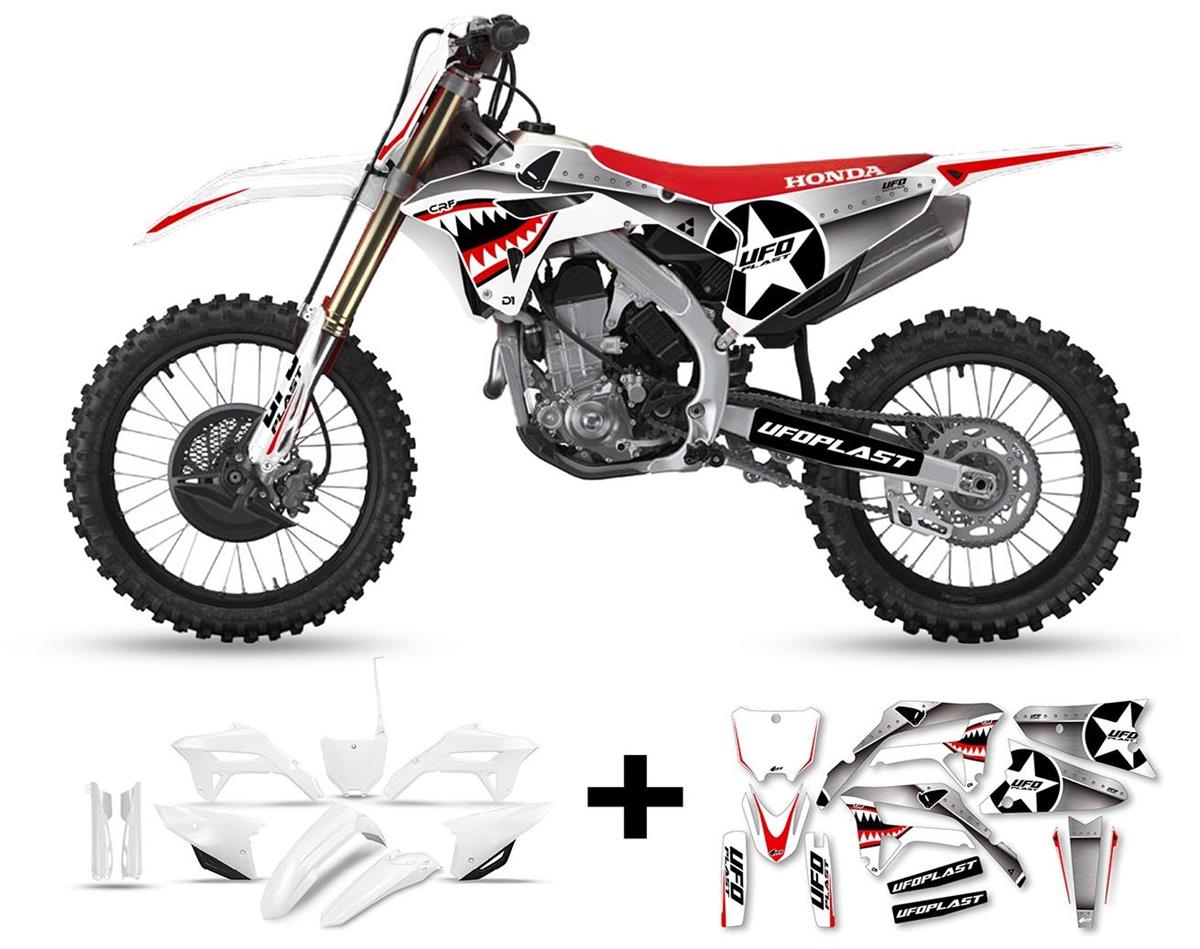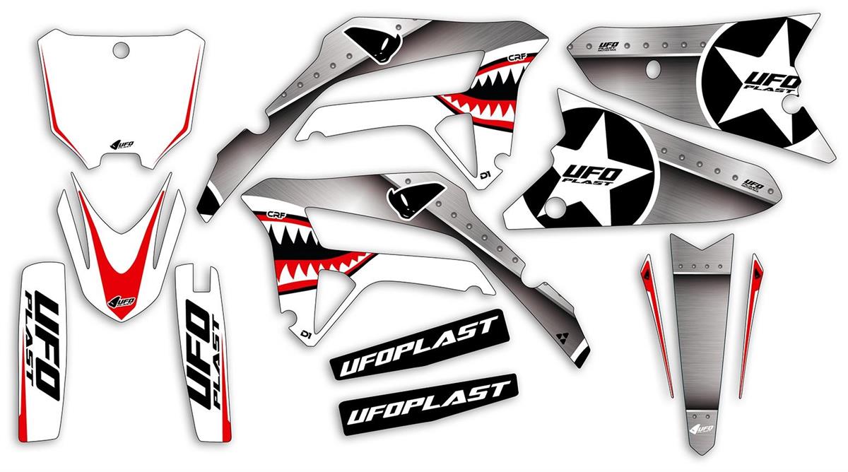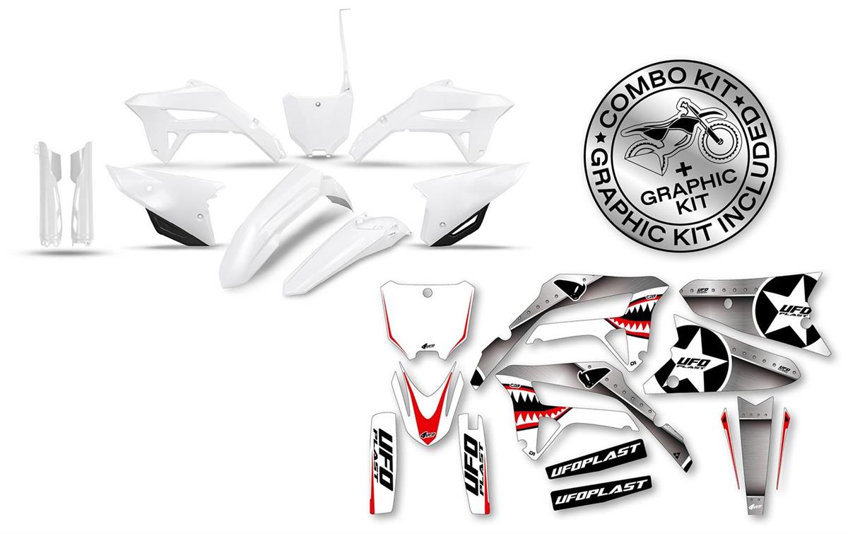 Kit Plastiche + Grafiche UFO per Honda CRF 250 R 22-23 Adesivi thunder bianco