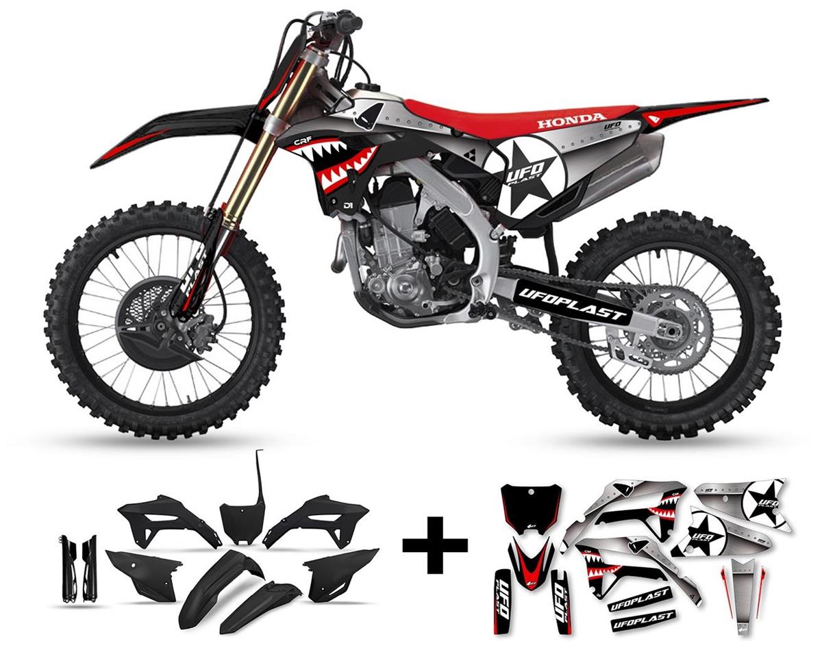 Kit Plastiche + Grafiche UFO per Honda CRF 450 R 21-23 Adesivi thunder nero