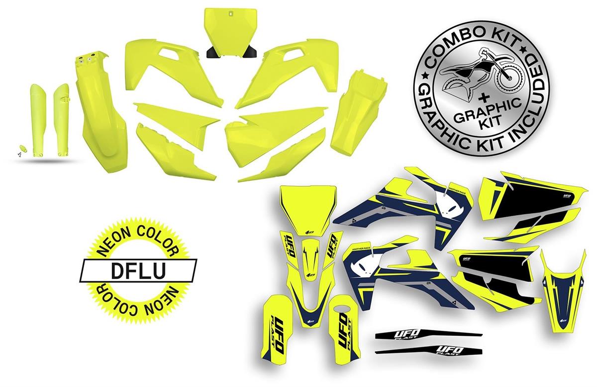 Kit Plastiche + Grafiche UFO per Husqvarna FC 450 19-22 Adesivi apodis giallo fluoro