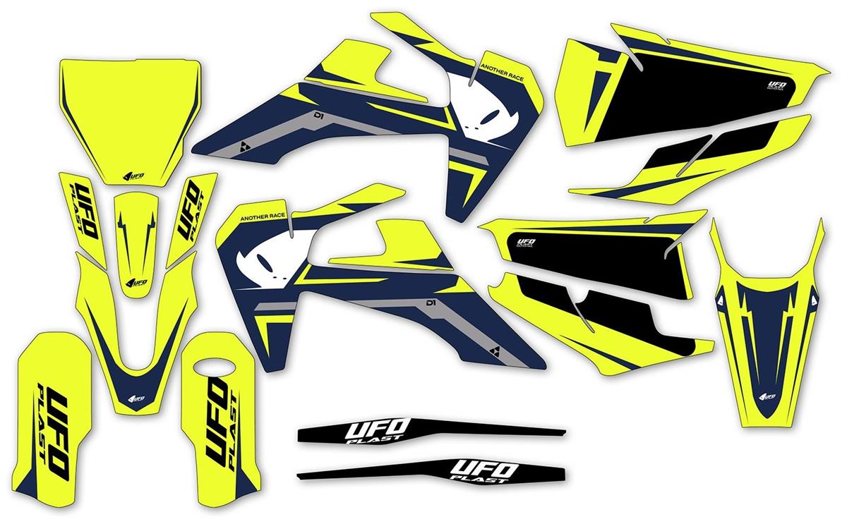 Kit Grafiche Adesive di alta qualità realizzato dalla UFO PLAST disegnate e stampate al 100% MADE IN ITALY. I materiali utilizzati sono di altissima qualità per garantire una resistenza senza paragoni, ma allo stesso tempo una malleabilità che ne garantisce una semplice applicazione.