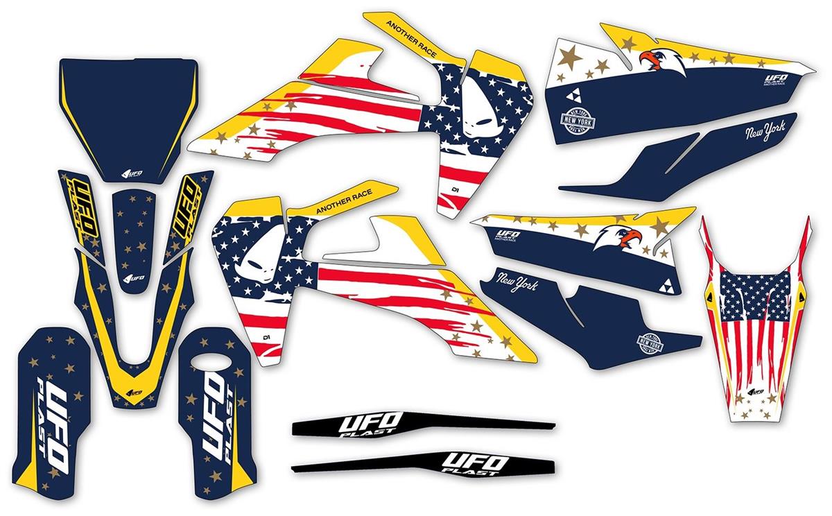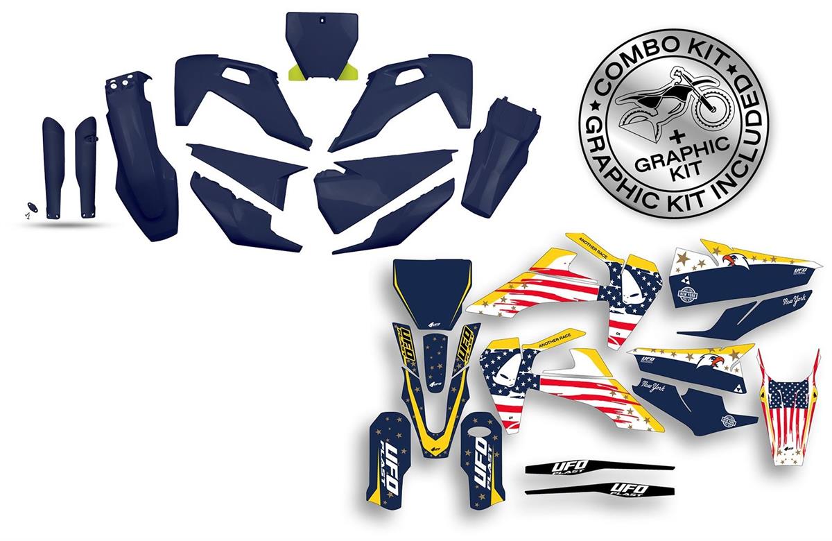 Kit Plastiche + Grafiche UFO per Husqvarna FC 450 19-22 Adesivi patriot blu