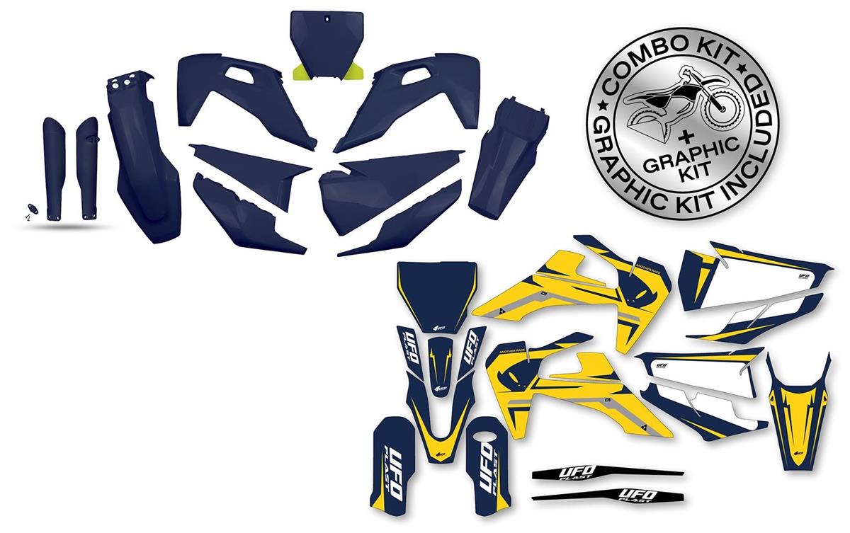 Kit Plastiche + Grafiche UFO per Husqvarna TC 125 19-22 Adesivi apodis blu