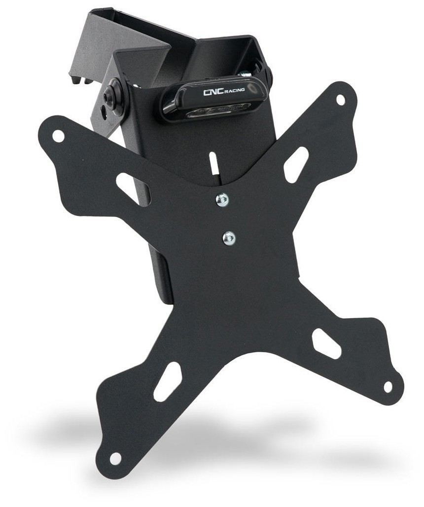 Porta targa regolabile in acciaio composto da supporto targa, luce targa LED, supporti frecce, catarifrangente.