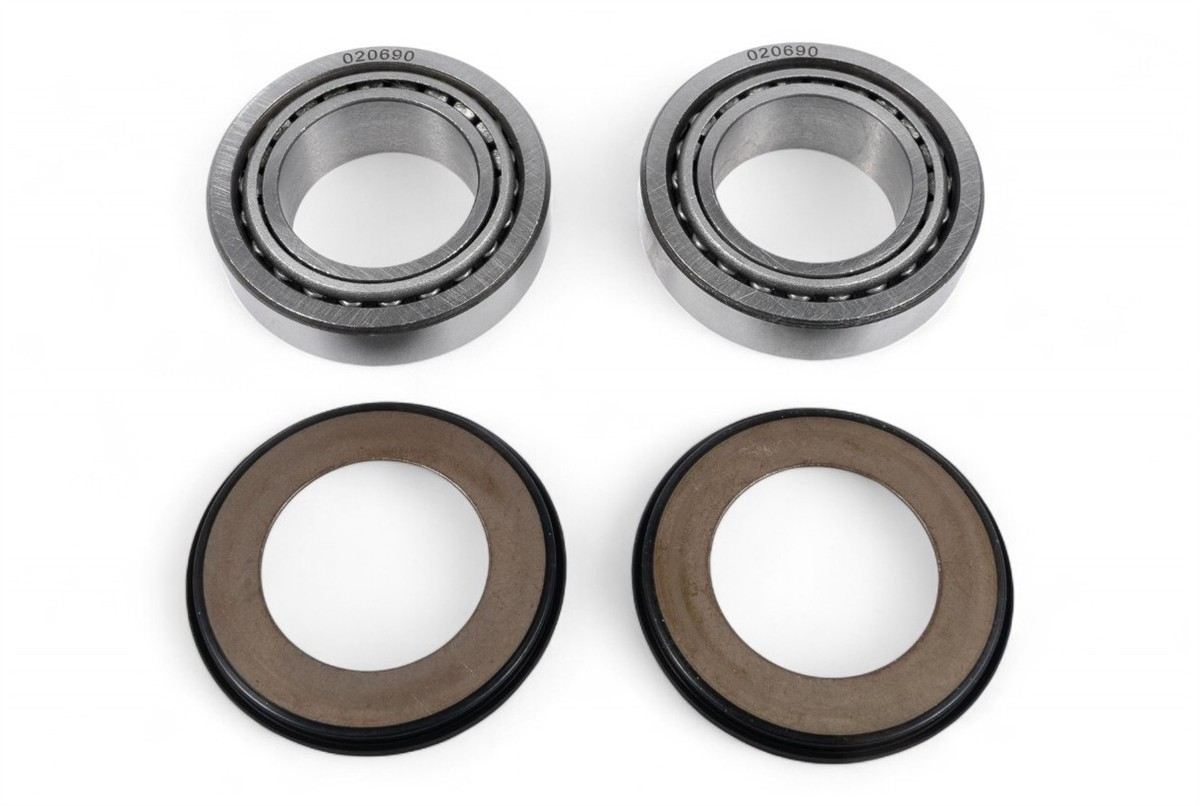 Il kit comprende la coppia di cuscinetti conici ed i relativi parapolvere.