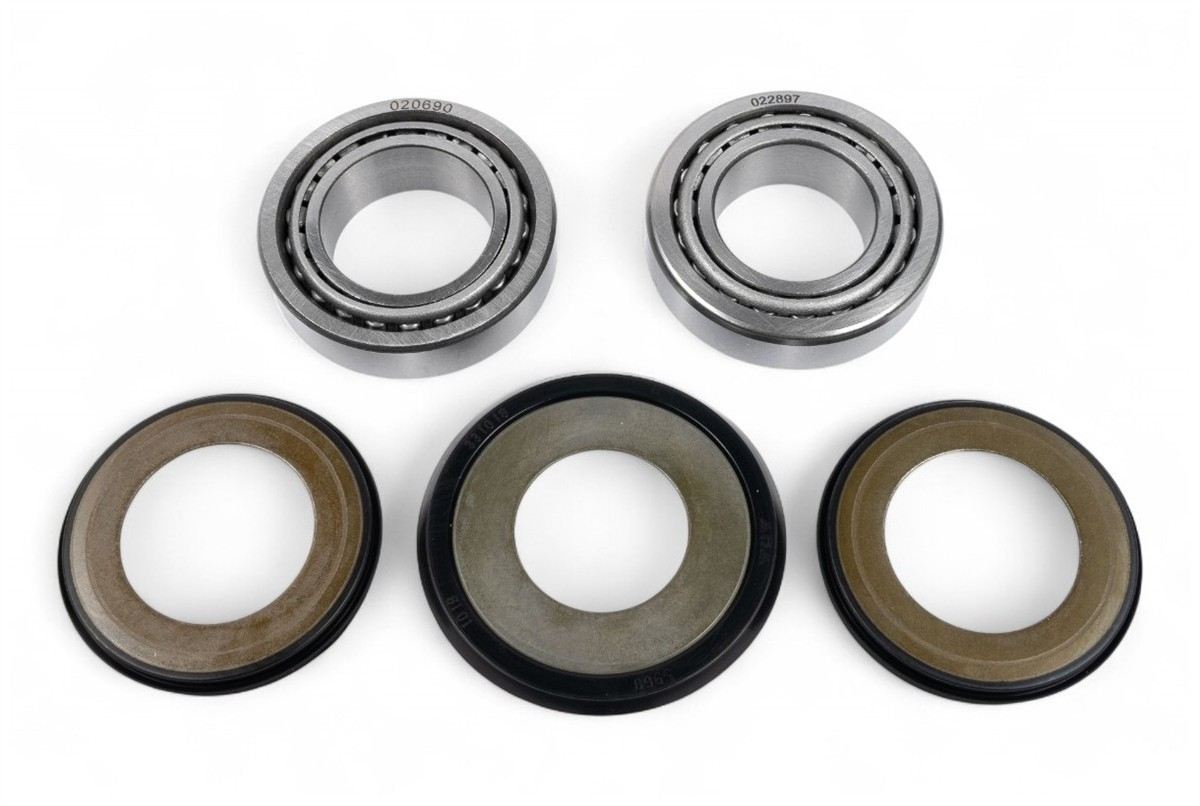 Il kit comprende la coppia di cuscinetti conici ed i relativi parapolvere.