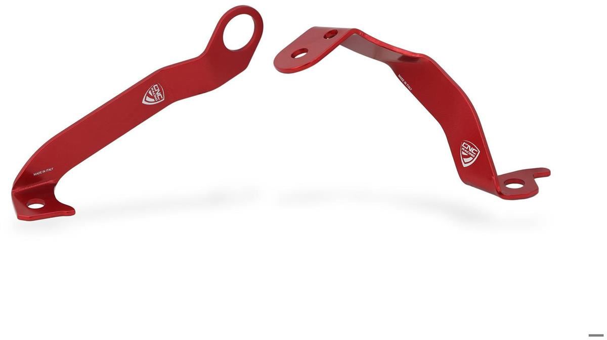 Kit staffe serbatoi fluido freno e frizione realizzate in alluminio con successivo trattamento di anodizzazione superficiale.