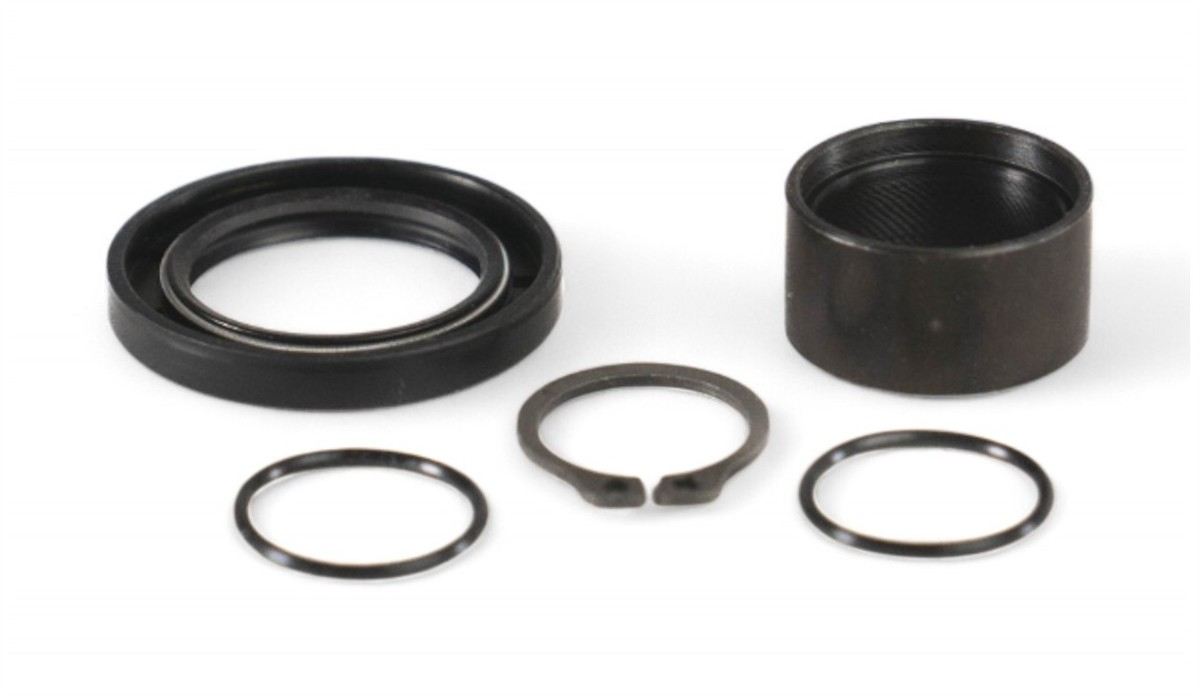 Questo kit contiene il paraolio, la bussola in acciaio, l’eventuale ranella di bloccaggio ed o-ring posti a tenuta dell’olio sull’albero del cambio, dietro il pignone.