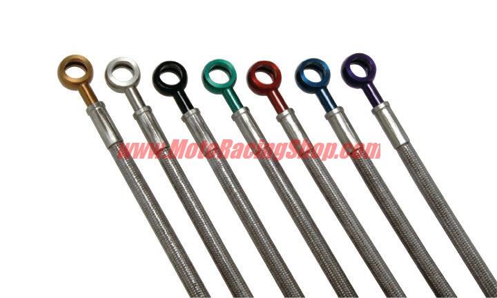 ACCOSSATO offre i tubi freno con Guaina di diversi colori e i raccordi in acciaio inox colorati. Questi raccordi vengono colorati tramite un processo di bagno galvanico che assicura una colorazione uniforme, una tonalità brillante, una protezione eccellente ai raggi ultravioletti, difetto a cui sono invece soggetti i raccordi in alluminio o ergal.