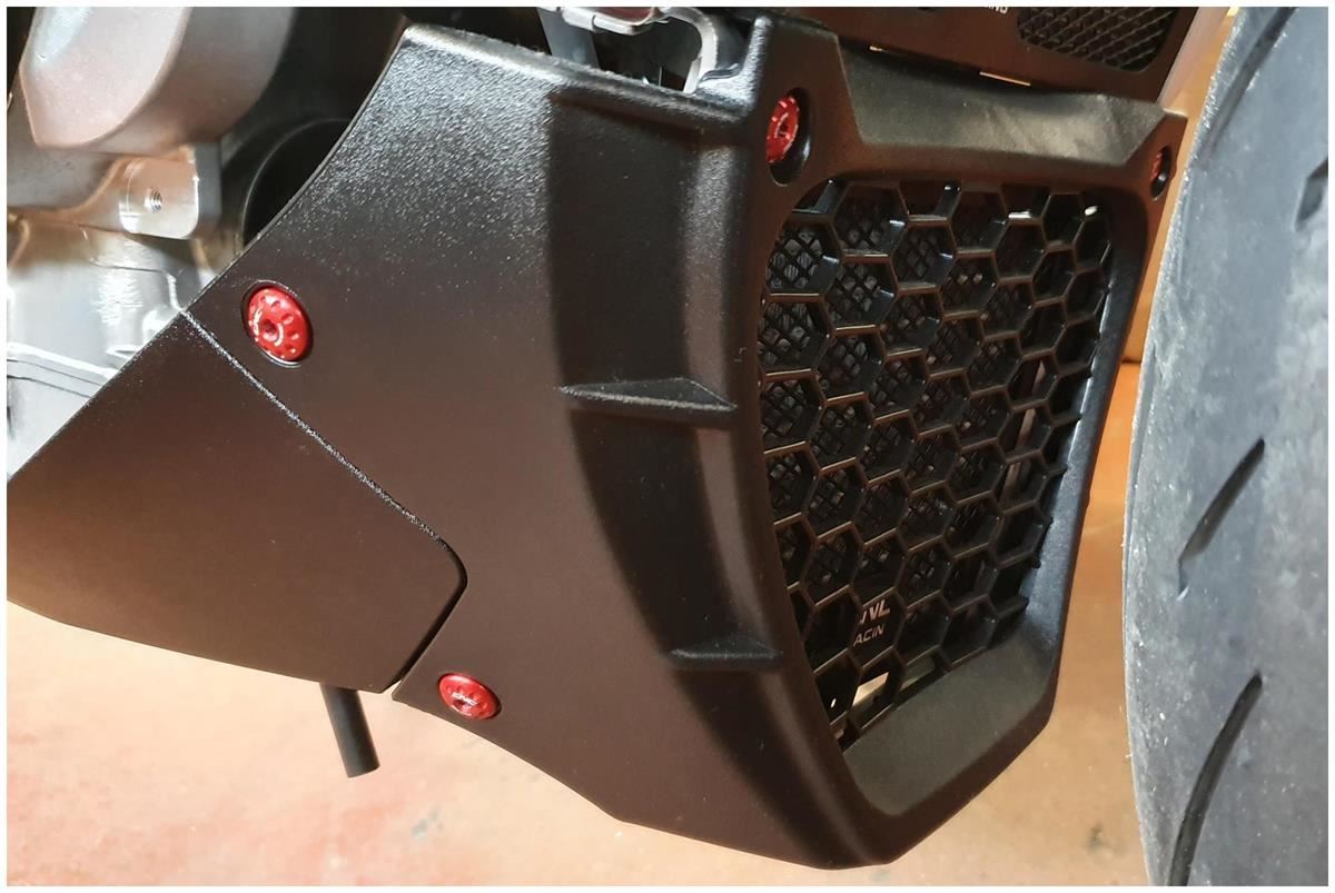 Kit viti carena inferiore Aprilia Tuono lavorate dal pieno in lega leggera con successiva anodizzazione.